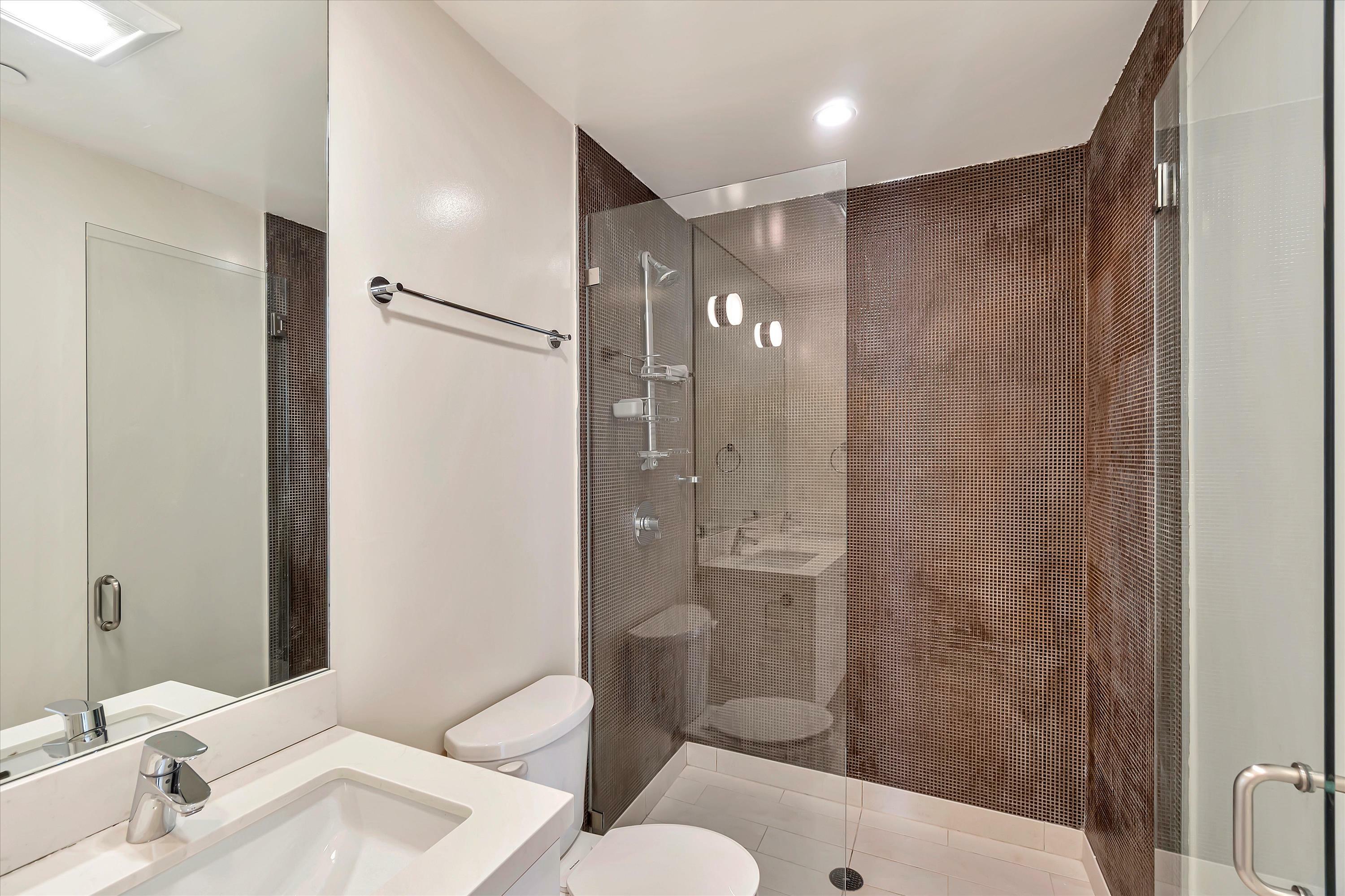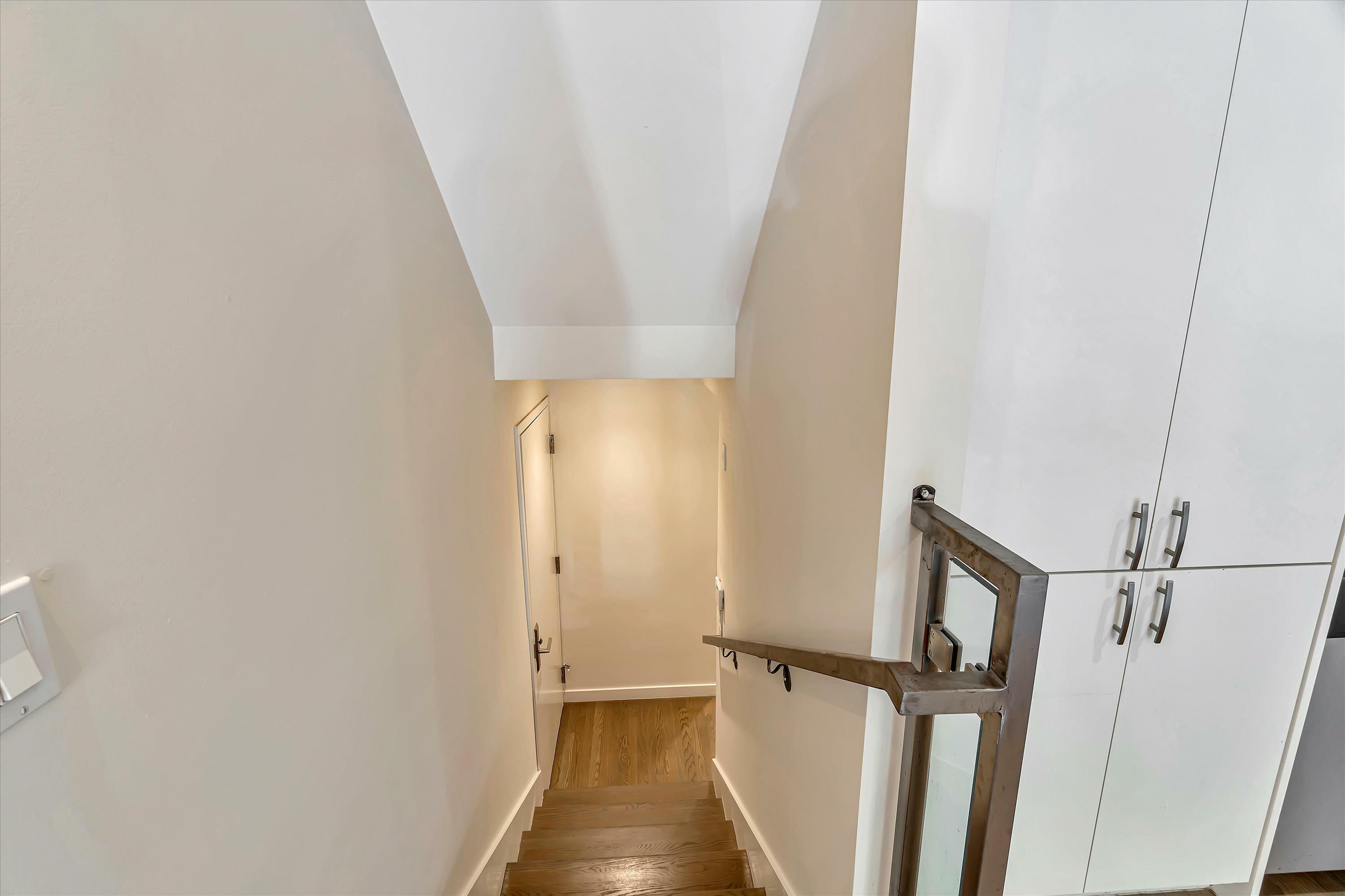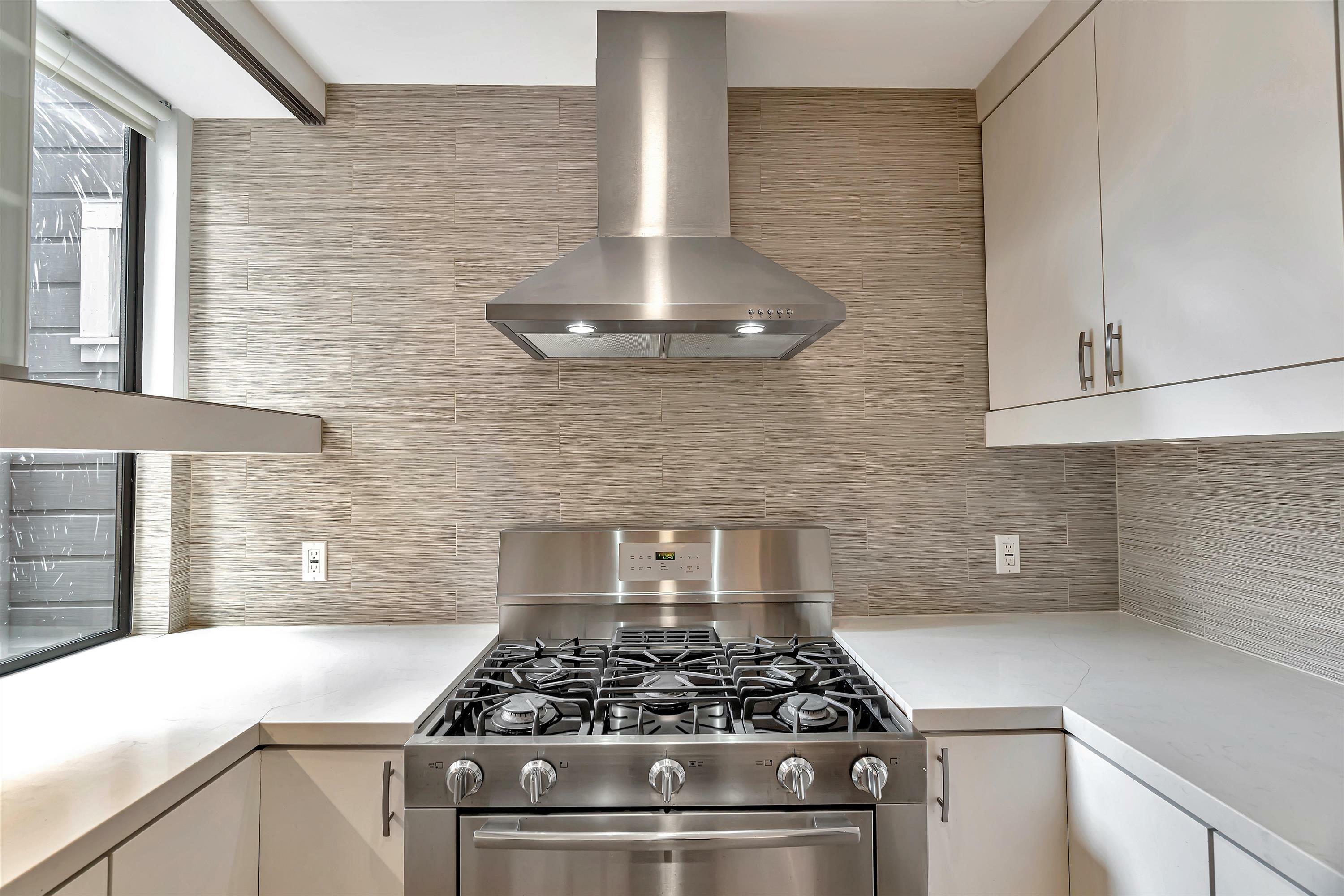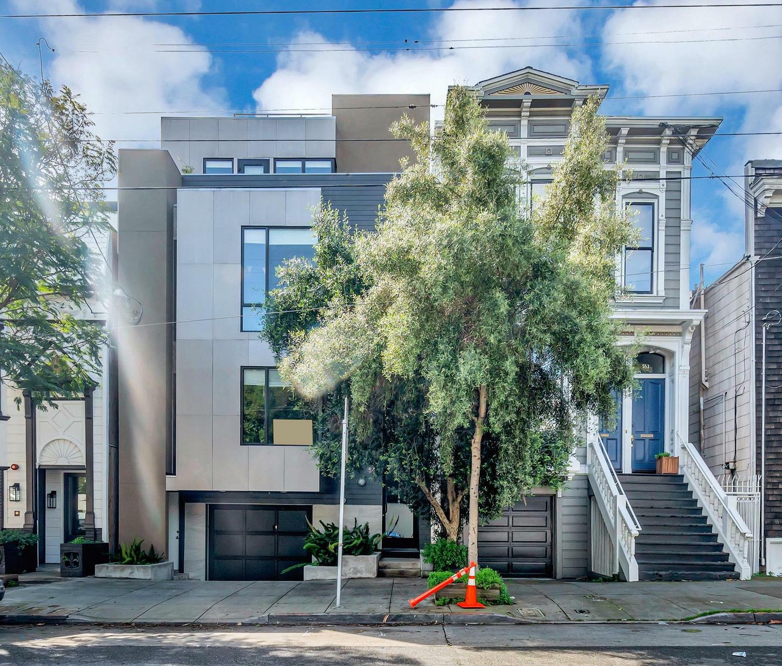 Located in the center of Hayes Valley, this contemporary home features a sleek open floor plan with hardwood floors and recessed lighting adorning every corner. The living room offers a cozy reading nook, complemented by an architecturally striking feature window, perfect for your relaxation and pleasure. This newer kitchen has quartz counters, under cabinet lighting, and stainless steel appliances including a 4-burner gas range, refrigerator and dishwasher. Step down to the bedroom level with two bedrooms and two full bathrooms. The primary bedroom faces the rear of the building which opens to a terrace and private rear yard. In-Unit Washer and Dryer. Shared view roof Deck. Walk-score of 99, walkers paradise.